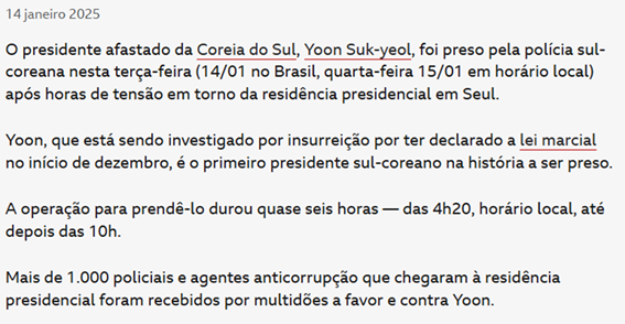 SE13976 - (Siga Escrevente. 2025. Inéditas) O encontro presencial entre o presidente dos Estados Unidos e o líder chinês, o primeiro no segundo mandato de Trump, foi realizado à margem da cúpula de CEOs da Cooperação Econômica Ásia-Pacífico (APEC).