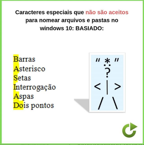 Não adianta nomear arquivo no windows 10 com algun desses caracteres, pois não vai rolar!