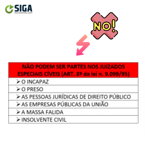 Art. 8º Não poderão ser partes, no processo instituído por esta Lei, o incapaz, o preso, as pessoas jurídicas de direito público, as empresas públicas da União, a massa falida e o insolvente civil.