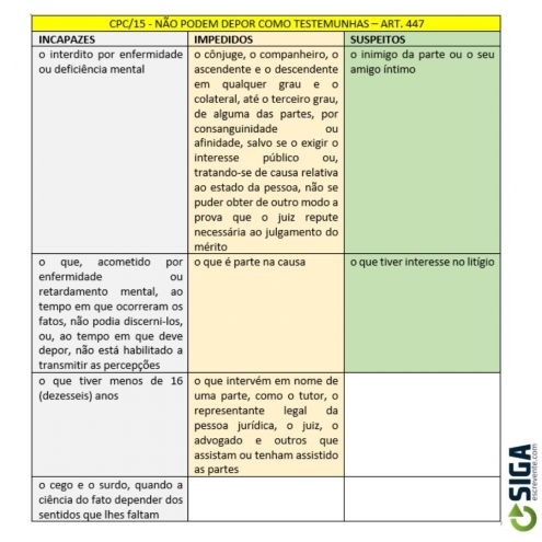 Art. 447. Podem depor como testemunhas todas as pessoas, exceto as incapazes, impedidas ou suspeitas.
