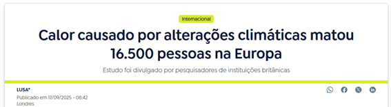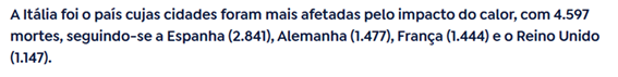 SE13958 - (Siga Escrevente. 2025. Inéditas) Uma pesquisa recente analisou o impacto das altas temperaturas e das mudanças climáticas no verão europeu. O estudo revelou um número alarmante de mortes em mais de 800 cidades de diferentes países.
