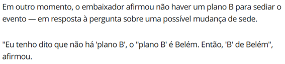 De acordo com a notícia, qual é o "plano B" para a sediar a COP30, segundo André Corrêa do Lago?