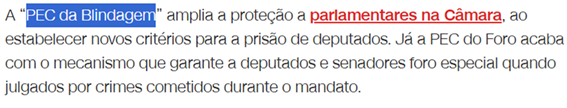 De acordo com a notícia, qual é o apelido da Proposta de Emenda à Constituição que visa alterar as regras de imunidade parlamentar?