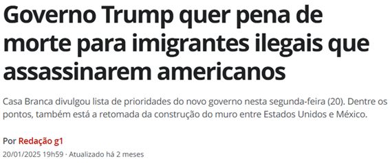 SE12933 - (Siga Escrevente. 2025. Inéditas) O presidente dos Estados Unidos, Donald Trump, anunciou medidas relacionadas à política de imigração e à aplicação da pena de morte.