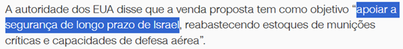 SE12932 - (Siga Escrevente. 2025. Inéditas) Em janeiro de 2025, o Departamento de Estado dos EUA notificou informalmente o Congresso sobre a intenção de realizar uma venda de armamentos no valor de US$ 8 bilhões para Israel. A medida ocorre em meio à guerra em Gaza e a alegações de uso inadequado dessas armas por forças israelenses, levantadas por entidades de direitos humanos e reconhecidas parcialmente pelo próprio governo norte-americano.