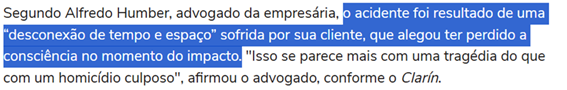 SE12918 - (Siga Escrevente. 2025. Inéditas) Em 1º de janeiro de 2025, a atriz e empresária Patricia Scheuer atropelou um casal de turistas brasileiros no bairro da Recoleta, em Buenos Aires. O acidente resultou na morte do homem, de 60 anos, enquanto a mulher, de 50 anos, sofreu ferimentos graves e foi hospitalizada. Scheuer foi detida e posteriormente liberada após prestar depoimento às autoridades argentinas.