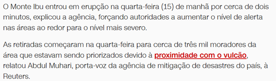 SE12905 - (Siga Escrevente. 2025. Inéditas) Um episódio de atividade vulcânica intensa na Indonésia levou as autoridades locais a adotar medidas emergenciais para proteger a população.