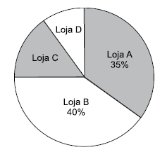 SE3495 - (6ª Rodada Semanal Objetiva. 2020. Vunesp) Em um depósito, há determinado número de unidades de um produto, que será distribuído entre as lojas A, B, C e D. O gráfico mostra algumas informações da porcentagem, sobre o número total de unidades desse produto, destinadas a cada loja.