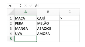 Imagine uma situação hipotética em que um operador digitou na célula A5 (da seguinte imagem) a fórmula: =CONCATENAR (C1;B4;A2).