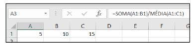 O valor numérico obtido na célula A3 é