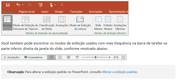 Assinale o modo que consiste em 3 (três) painéis e trabalha em um único slide: visão geral, slides e anotações.