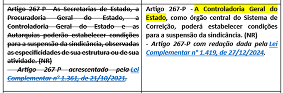 A Controladoria Geral do Estado, como órgão central do Sistema de Correição, poderá estabelecer condições para a suspensão da sindicância.