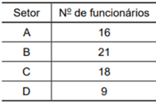 SE12551 - (Técnico de Transcrição. 2024. Vunesp) A tabela mostra o número de funcionários que trabalham em cada um dos 4 setores de uma empresa.