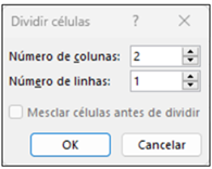 SE12557 - (Assistente Social Judiciário. 2024. Vunesp) Um usuário criou um documento vazio por meio do MS-Word 365, em sua configuração padrão, e inseriu uma tabela com 3 linhas e 2 colunas. Em seguida, com o cursor dentro da célula da primeira coluna e primeira linha, escolheu o ícone Dividir células e, na janela de opções aberta, escolheu 2 para Número de colunas e 1 para Número de linhas, clicando em OK para aplicar as opções. Assinale a alternativa que apresenta a quantidade de células da tabela após a ação descrita no enunciado.
