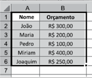 O usuário preencheu os dados e selecionou todos os dados clicando em A1 e arrastando a seleção até B6. Em seguida, clicou no botão para classificar de forma crescente (