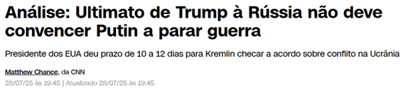 De acordo com a notícia, qual foi o novo prazo estabelecido por Donald Trump para a Rússia?