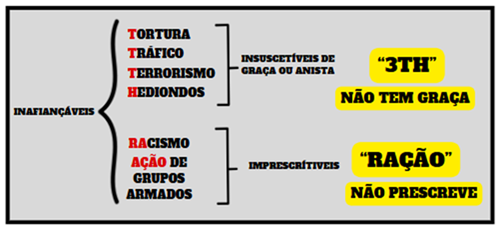 Assim, João, ao estudar uma determinada infração penal citada pela Constituição Federal, verificou que se tratava de um crime inafiançável e imprescritível, sujeito à pena de reclusão, nos termos da lei.