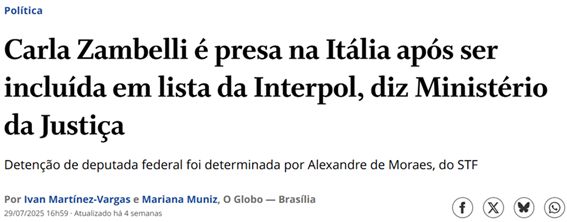 De acordo com a notícia, em qual país Carla Zambelli foi presa?