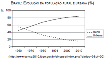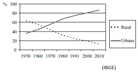 A leitura do gráfico e os conhecimentos sobre a dinâmica demográfica brasileira permitem afirmar que, percentualmente, a população