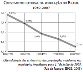A leitura do gráfico permite concluir que o crescimento natural da população brasileira