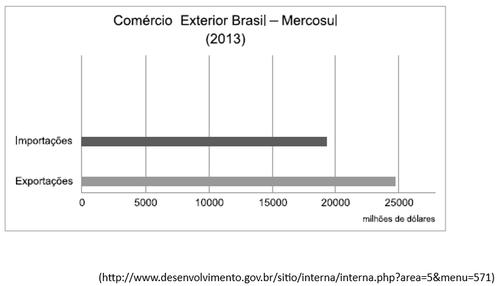 A leitura do gráfico permite afirmar que, em 2013, as relações comerciais entre o Brasil e o Mercosul