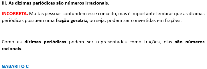 SE12276 - (Professor. 2010. Vunesp) Um aluno da EJA colocou na lousa três afirmações sobre números: