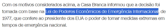 Qual o nome da lei que confere ao presidente dos EUA o poder de tomar medidas extremas em tempos de emergência nacional, e que foi usada para justificar a tarifa?