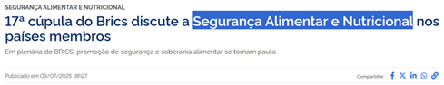 SE13794 - (Siga Escrevente. 2025. Inéditas) A 17ª Cúpula do Brics, fórum de cooperação entre Brasil, Rússia, Índia, China e África do Sul, foi realizada no Rio de Janeiro e contou com a participação dos chefes de Estado. Durante o encontro, foram debatidos temas importantes para os países membros, com foco em uma questão crucial para o desenvolvimento e o bem-estar da população.