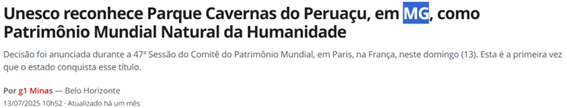 SE13797 - (Siga Escrevente. 2025. Inéditas) O Parque Nacional Cavernas do Peruaçu, um dos mais importantes sítios naturais e arqueológicos do Brasil, foi reconhecido como Patrimônio Mundial Natural da Humanidade pela Unesco. O local abriga mais de 250 cavernas e tem ecossistemas de Cerrado, Caatinga e Mata Atlântica.