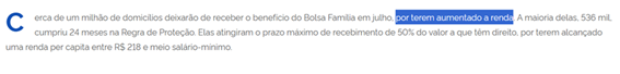 De acordo com a notícia, qual é o principal motivo pelo qual as famílias foram desligadas do programa Bolsa Família?