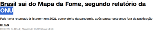 De acordo com a notícia, qual organismo internacional anunciou a saída oficial do Brasil do Mapa da Fome?