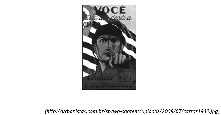 SE12153 - (Guarda Civil Municipal. 2010. Vunesp) A questão está relacionada ao cartaz da Revolução de 1932.