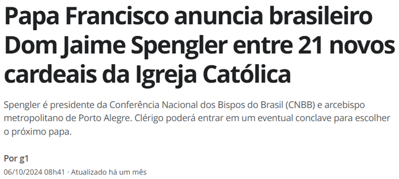 SE12134 - (out/24) O Papa Francisco anunciou 21 novos cardeais, entre eles um brasileiro que será oficializado no consistório de 8 de dezembro. Qual é o nome do brasileiro escolhido para integrar o colégio cardinalício?