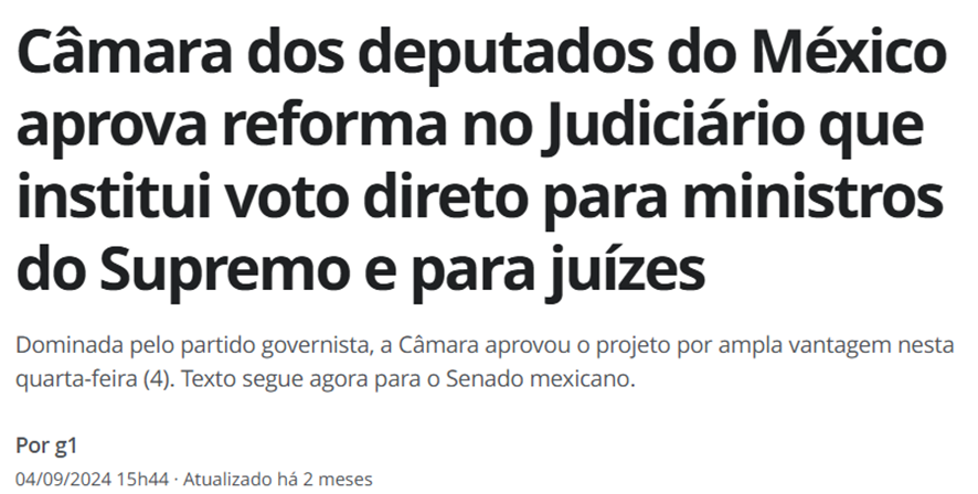 SE12131 - (set/24) O presidente do México, Manuel Andrés López Obrador, aprovou uma reforma judicial que introduz um modelo inédito no mundo. Qual é a principal característica dessa reforma?