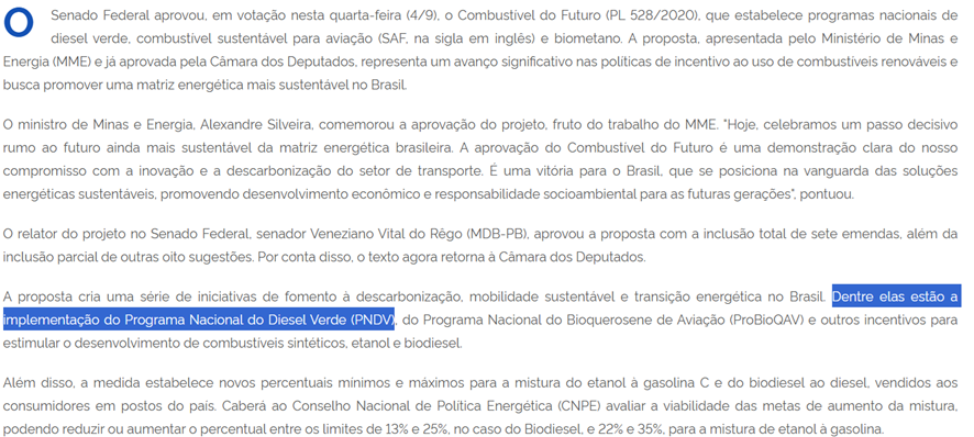 SE12118 - (set/24) O Senado Federal aprovou, em setembro de 2024, o projeto de lei "Combustível do Futuro" (PL 528/2020), que promove a descarbonização e a transição energética no Brasil. Qual dos seguintes programas faz parte dessa iniciativa?