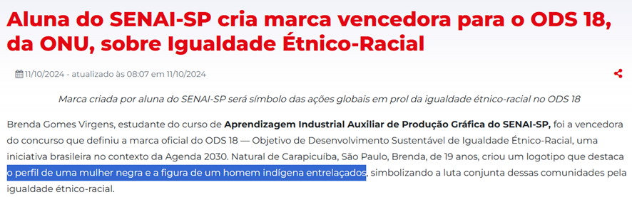 SE12125 - (out/24) Em 2024, Brenda Gomes Virgens venceu o concurso para criar a marca do ODS 18, de Igualdade Étnico-Racial. Qual foi o conceito central da marca elaborada por ela?