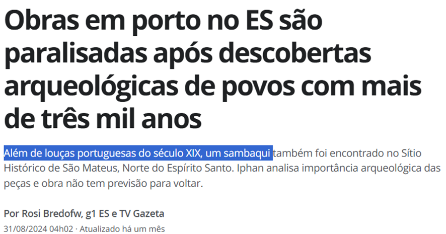 SE12123 - (ago/24) Em 2024, obras em um porto no Espírito Santo foram paralisadas devido a descobertas arqueológicas. Quais foram os principais itens encontrados durante as escavações?