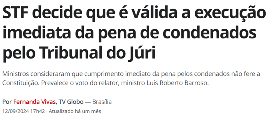 SE12117 - (set/24) O Supremo Tribunal Federal (STF) decidiu sobre a prisão imediata após condenação pelo Tribunal do Júri. Qual foi a principal consequência dessa decisão?