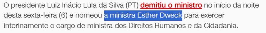 SE12109 - (set/24) O ministro dos Direitos Humanos e Cidadania, Silvio Almeida, foi denunciado por assédio sexual e demitido do cargo. Quem assumiu o ministério temporariamente após a demissão de Silvio Almeida?