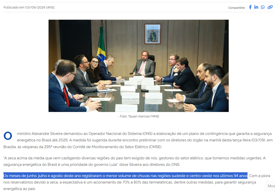SE12108 - (set/24) Em setembro de 2024, o Ministro de Minas e Energia, Alexandre Silveira, solicitou ao Operador Nacional do Sistema Elétrico (ONS) a elaboração de um plano de contingência para garantir a segurança energética do Brasil até 2026. Qual fator foi determinante para essa medida?