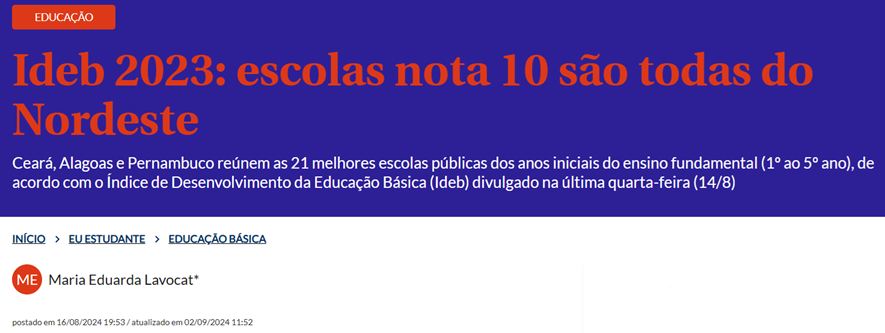 SE12106 - (ago/24) De acordo com os dados divulgados pelo IDEB, todas as 21 escolas públicas que obtiveram nota 10 estão localizadas em uma única região do Brasil. Quais estados concentram essas escolas e em que número?