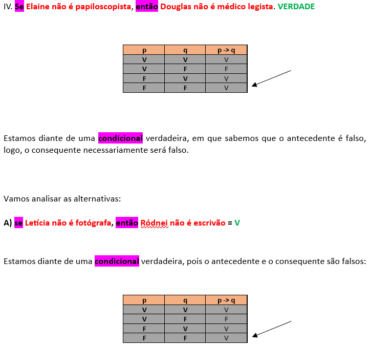 IV. Se Elaine não é papiloscopista, então Douglas não é médico legista. VERDADE.