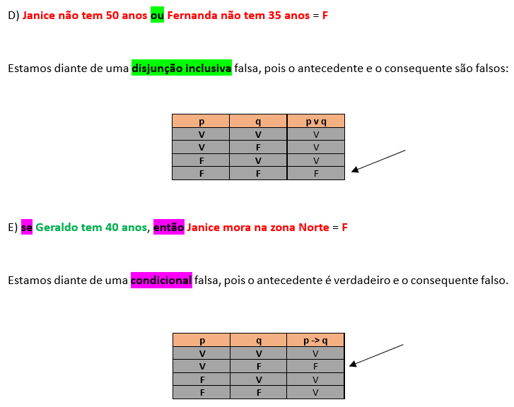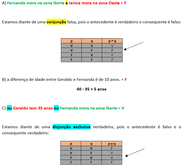 SE12032 - (Escrivão – PC/SP. 2023. Vunesp) Fernanda, Geraldo e Janice são escrivães e moram em zonas diferentes da cidade: Oeste, Norte e Sul, não necessariamente nessa ordem. As idades deles são 35, 40 e 50 anos, também não necessariamente nessa ordem. O que é sabido é que a pessoa que mora na zona Oeste é o Geraldo, que Janice tem 50 anos, e que a pessoa que tem 35 anos mora na zona Norte. Com essas informações, é logicamente verdadeiro que