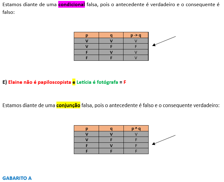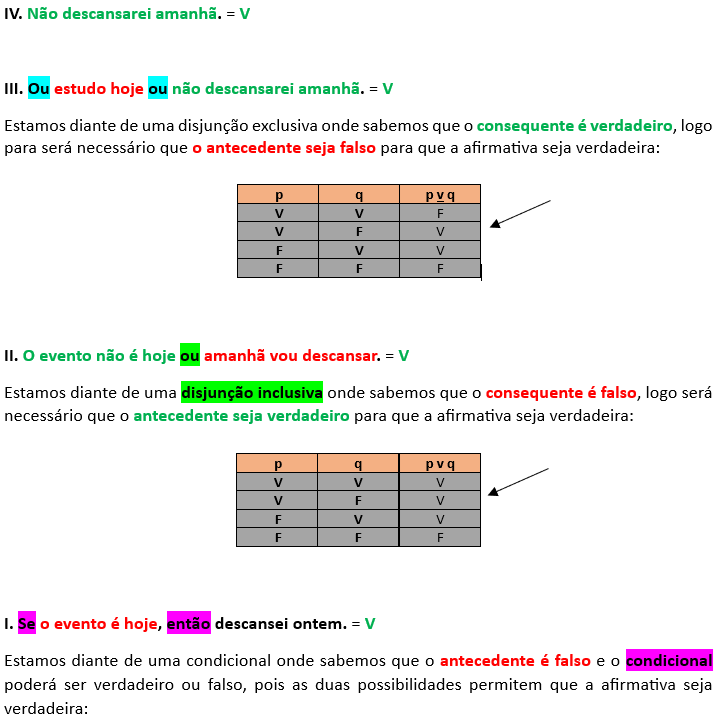 SE12029 - (Escrivão – PC/SP. 2023. Vunesp) Considere as afirmações e o respectivo valor lógico atribuído a cada uma.
