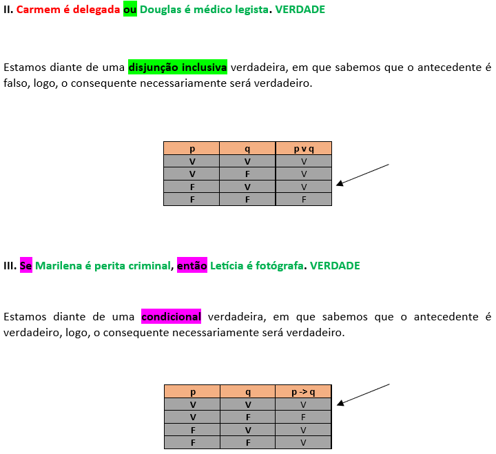 II. Carmem é delegada ou Douglas é médico legista. VERDADE.
