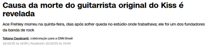 SE13972 - (Siga Escrevente. 2025. Inéditas) O guitarrista original, que morreu aos 74 anos em Nova Jersey, ficou conhecido por seu estilo e por suas maquiagens extravagantes no palco. O músico era considerado uma lenda do rock e vendeu milhões de discos ao longo de sua carreira.