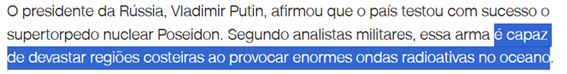 De acordo com a notícia qual é o nome do supertorpedo nuclear testado pela Rússia?