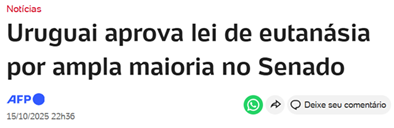 De acordo com a notícia, qual é o país sul-americano que aprovou a lei que autoriza a eutanásia?
