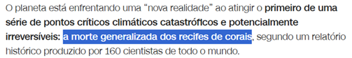 De acordo com a notícia, qual é o primeiro ponto crítico climático catastrófico e potencialmente irreversível atingido pelo planeta?