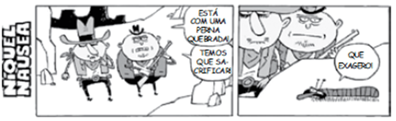 Segundo o efeito de humor pretendido, o personagem exclama “Que exagero!” porque